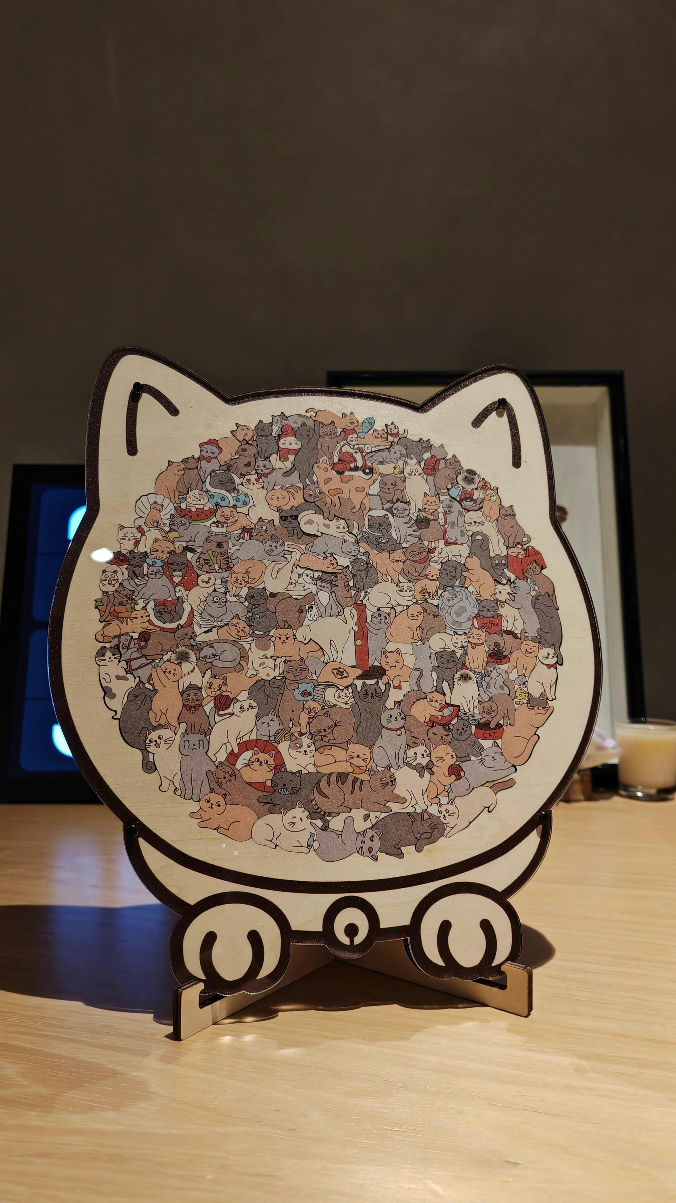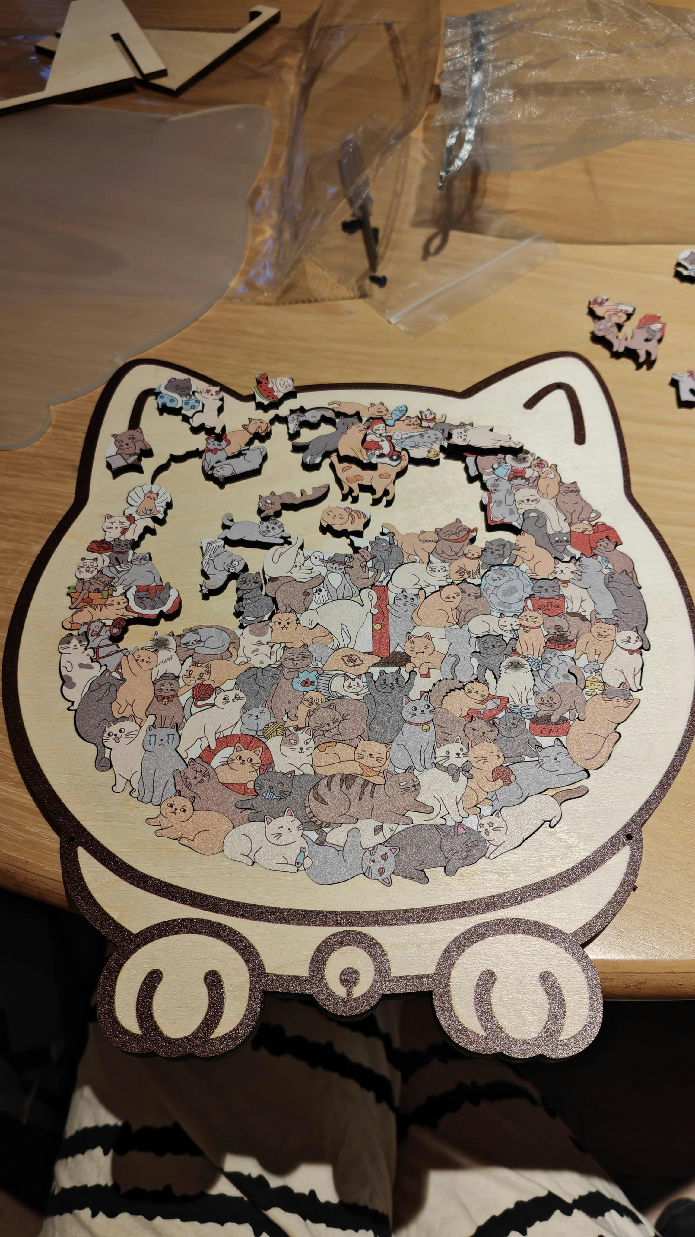 I finished this puzzle in one evening — the tiny cat-shaped pieces are adorable. The wood feels smooth and the Morandi colors look even better in person. Absolutely worth it for anyone who needs a cozy, calming activity.